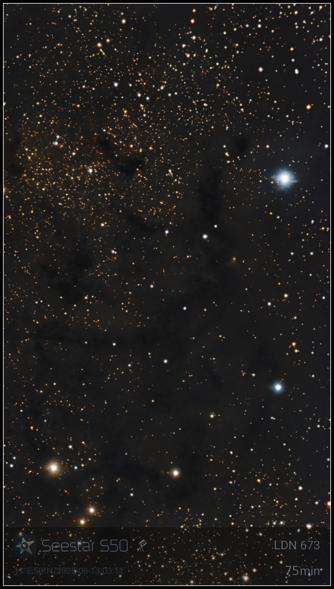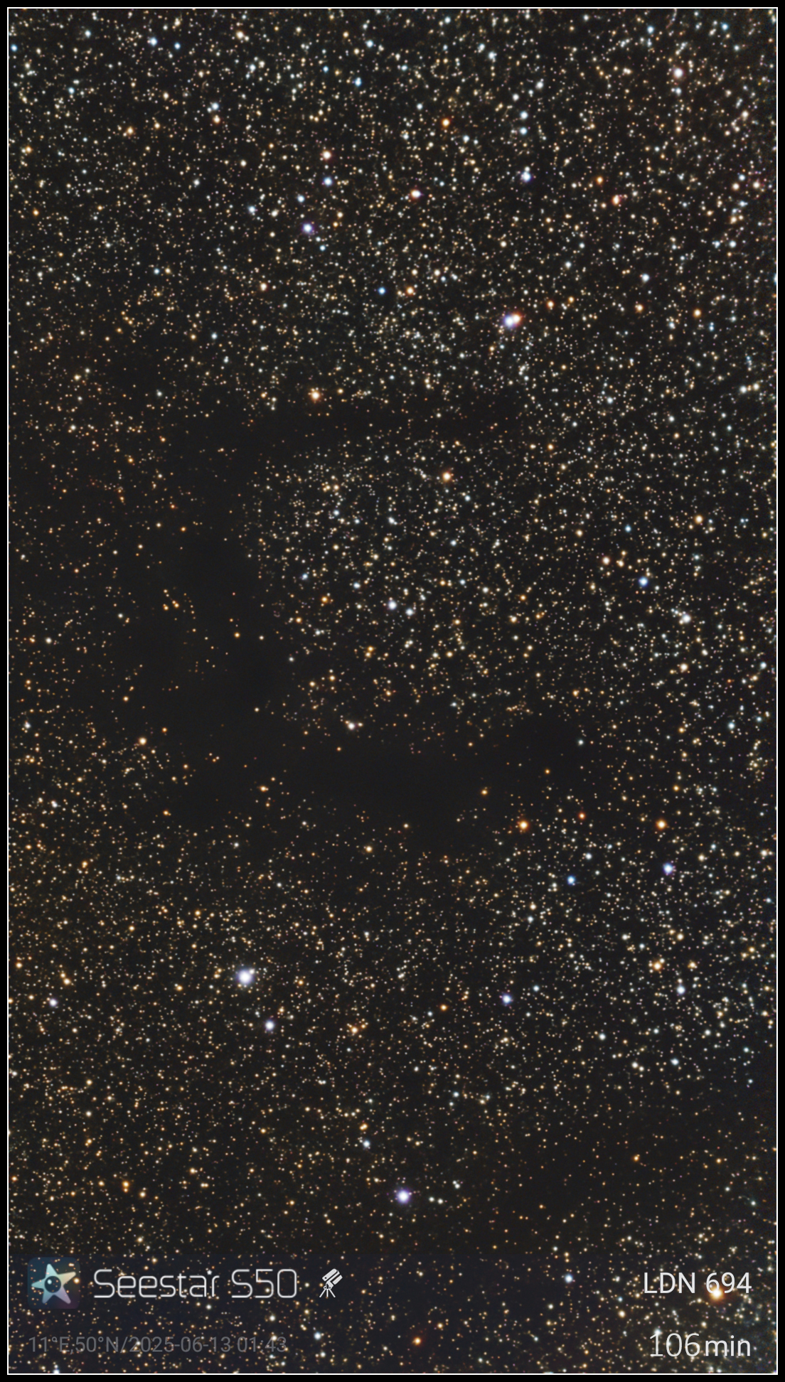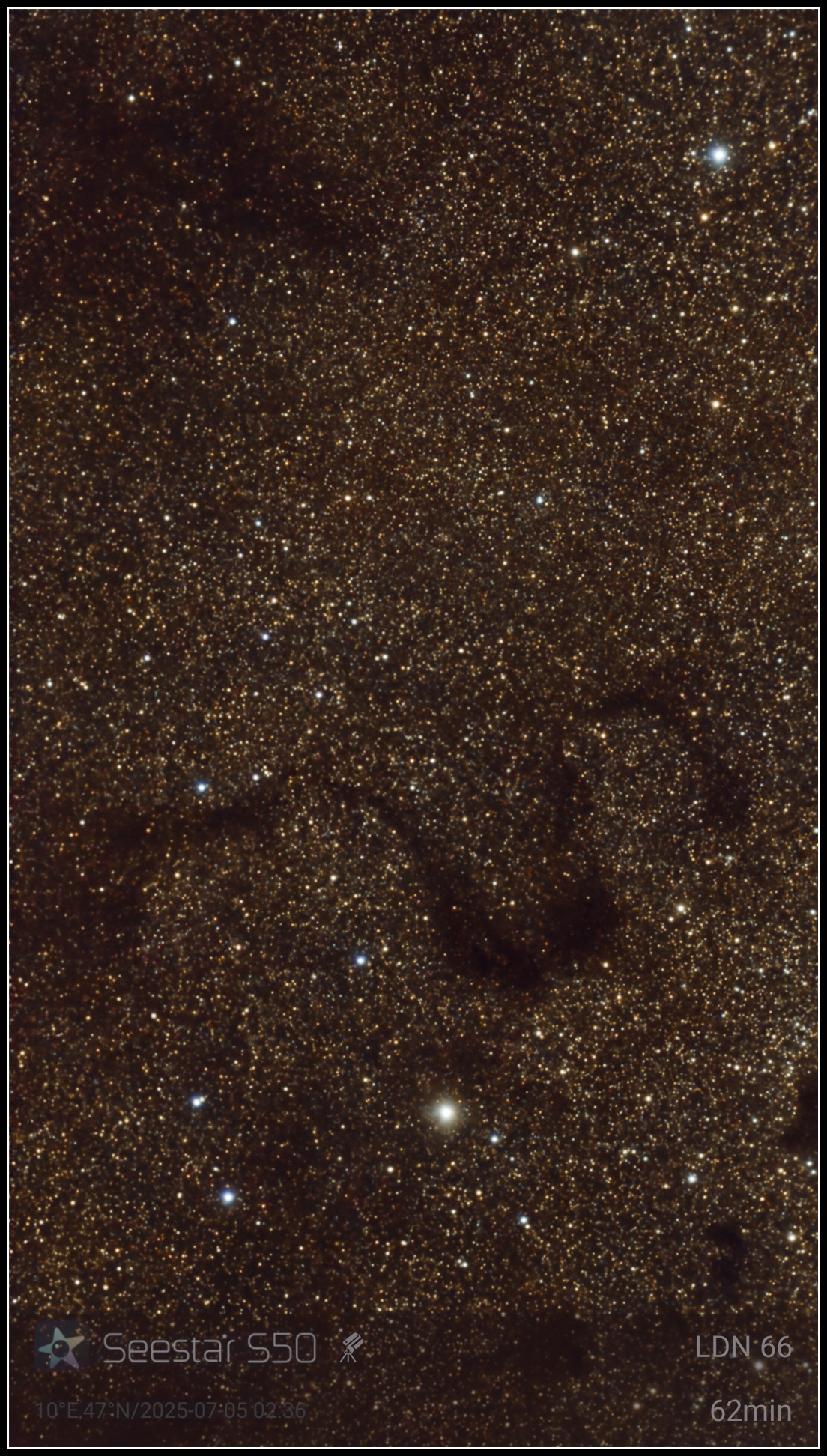 Hier sind immer die neuesten Bilder von Dunkelnebeln zu sehen, welche ich mit dem Seestar S50 im EQ-Modus gemacht habe. Mit Klick auf die Vorschaubilder seht ihr die Bilder im FHD-Format. Die Bilder habe ich im RAW-Format aufgenommen und mit AstroPixelProcessor gestackt. Die weitere Bearbeitung in PI und die finale Bearbeitung erfolgt immer in Photoshop.